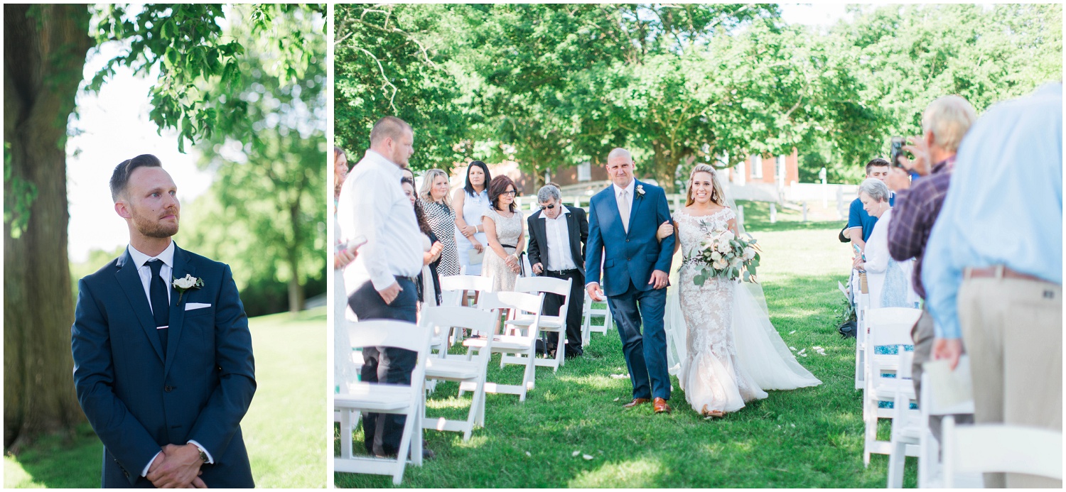 Photography: Brooke Bailey of On A Whim Co. | Location: Harrodsburg, KY | Venue: Shaker Village of Pleasant Hill | Videography: Love The Renauds | Florals: Carol Lynn Originals & Events | Caterer: Rolling Red State BBQ Food Truck | Cake: Martine’s Pastries | Rentals: Bryant’s Rent-All, Events with Design | Music: Ceremony - Volare String Quartet, Reception - DJ James Parker | Transportation: Gold Shield | Paper Products: Shasta Bell Calligraphy | Hair & Makeup: Lovely Beauty Lab | Bride's Attire: Stephen Yearick from European Bridal Fashion | Credits: Wedding Signs & Table Numbers - Love In The Lettering by Raychel Riggs, Groom’s Hair - The Rooster’s Nest, Bridal Robe - Pretty Plum Sugar, Guest Book - Claire Magnolia, Ring Box - The Mrs Box, French Market Dress Hanger - BHLDN.