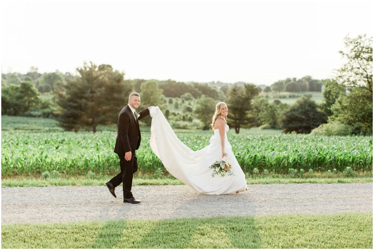 From the Bride: When my fiance and I saw our wedding venue for the first time, it was love at first sight. With rolling Kentucky hills in every direction and so much potential to bring this space to life, we knew this was it! This was where we'd have the wedding of our dreams. The large old tobacco barn had farm equipment parked in it, overgrown weeds and plants everywhere, and even coyote poop on the floors! So, while most couples would overlook a venue that would clearly be such a huge undertaking, we had a vision. Months before the wedding, we began cleaning, pressure washing, landscaping, decorating and spending every day onsite working. It was a labor of love. On the day of our wedding, when we saw the final transformation, my husband and I were both immediately brought to tears. Seeing our wedding venue after months of work was one of the best moments of our wedding day.
