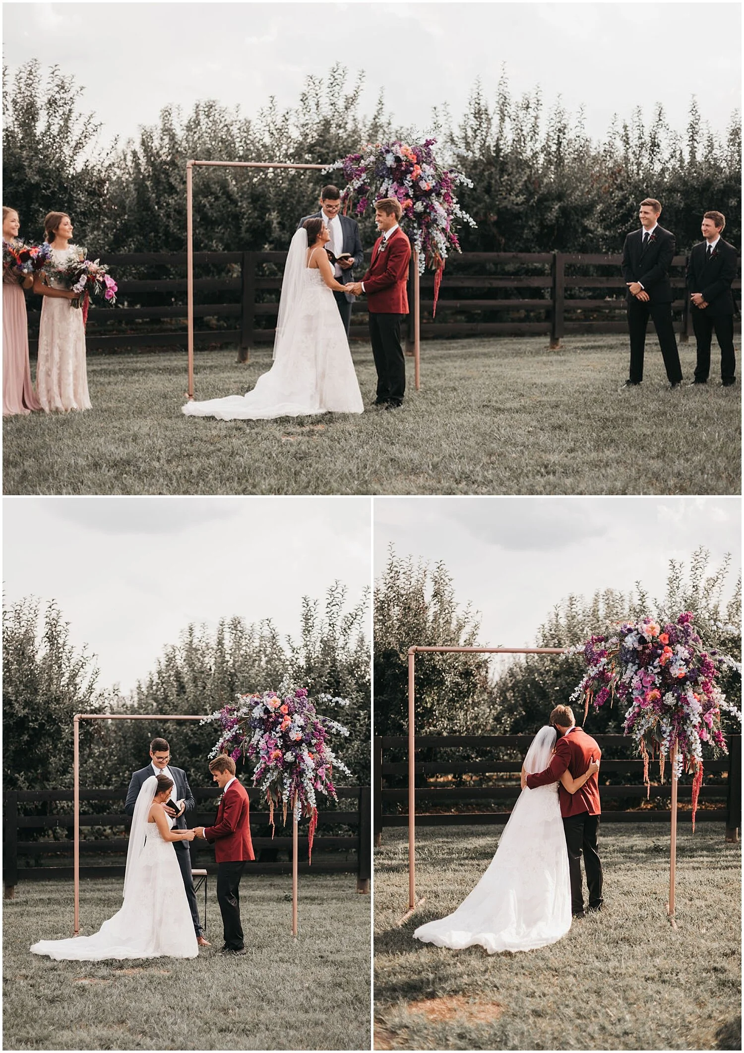 Photography: Kelsi Webb | Videography: Richard Quick with Frame Visuals | Location: Georgetown | Venue: The Event Barn at Evan's Orchard | Florals + Wedding Planner + Event Designer: Joanna Keiser of Natural Endeavors | Caterer + Desserts: Donna Potter of Catering by Donna | Cake: Chloe Gabbard of Cakes by Coco | Rentals: Bryant’s Rent-All (Linens, Dinnerware, Glasses) Canvas Event Furniture & Lounge Rentals (Lounge Areas + Outside Bar) | Music: Larry Lee of Soundwave Mobile DJ | Stationery + Paper Goods: (Save the Date) Zazzle (Wedding Invitations ) Minted (Menu) Bliss Paper Boutique (Bar Signs) Etsy | Hair: Cassie Campbell-Hamilton | Makeup: Annamaria Corea | Bride’s Attire: The White Dress | Groom’s Attire: Express | Credits: (Bridesmaids’ Dresses) Azazie (Bridal Party Accommodations) A Storybook Inn (Wedding Favors) Tin Can Roasters