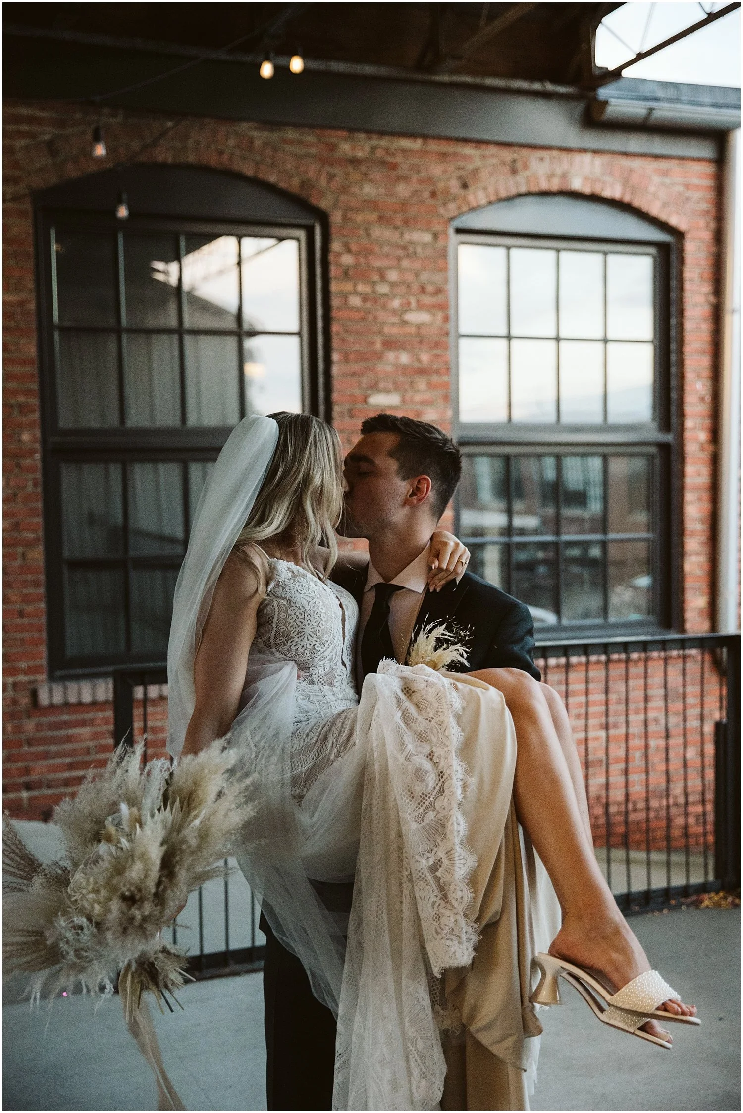 Photography: Beth Michiemo Photography | Videography: Colin Merritt Wedding Films | Location: Louisville | Venue + Wedding Planner + Event Designer: The Pointe | Florals: Fern & Sun Palm | Caterer: Michaelis Events | Cake: Kelsey's Cakes | Music: Night Owl DJs | Hair: Beheld | Makeup: Beauty By Katie LLC | Bride’s Attire: Relix Bridal | Groom’s Attire: Men’s Wearhouse | Credits: (Bridesmaids’ Bouquets) Pampas Grass Season