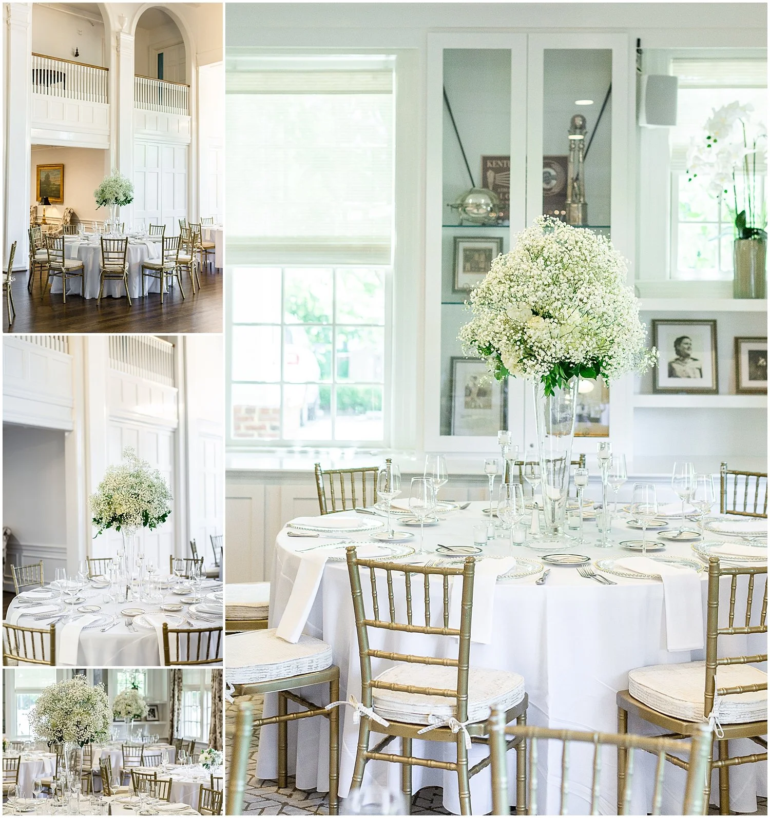 When dinner started, two sets of double doors opened to a beautiful ballroom filled with white baby’s breath and gold accents. Guests looked at large antique gold mirrors to find their table numbers. We were announced from the balcony as "Kiss" by Prince played. When the song ended we danced our fiirst dance to "More of You" by Chris Stapleton. As we danced the light shined into the ballroom, which brought a feeling of past loved ones being with us. It was a breathtaking moment. The Company Band played old and new hits that kept everyone on the dance floor all night long. Then with a dress change everyone left and it was just the photographer and couple. We had a private final dance that will forever be my FAVORITE part of the wedding. Just the two of us danced to "Lifetime" by Justin Bieber. In that moment we both realized we were married and were able to slow down to take in that moment. We then exited through to our vintage convertible car through a sparkler send-off and left for our after party. What a beautiful night that we will never forget.