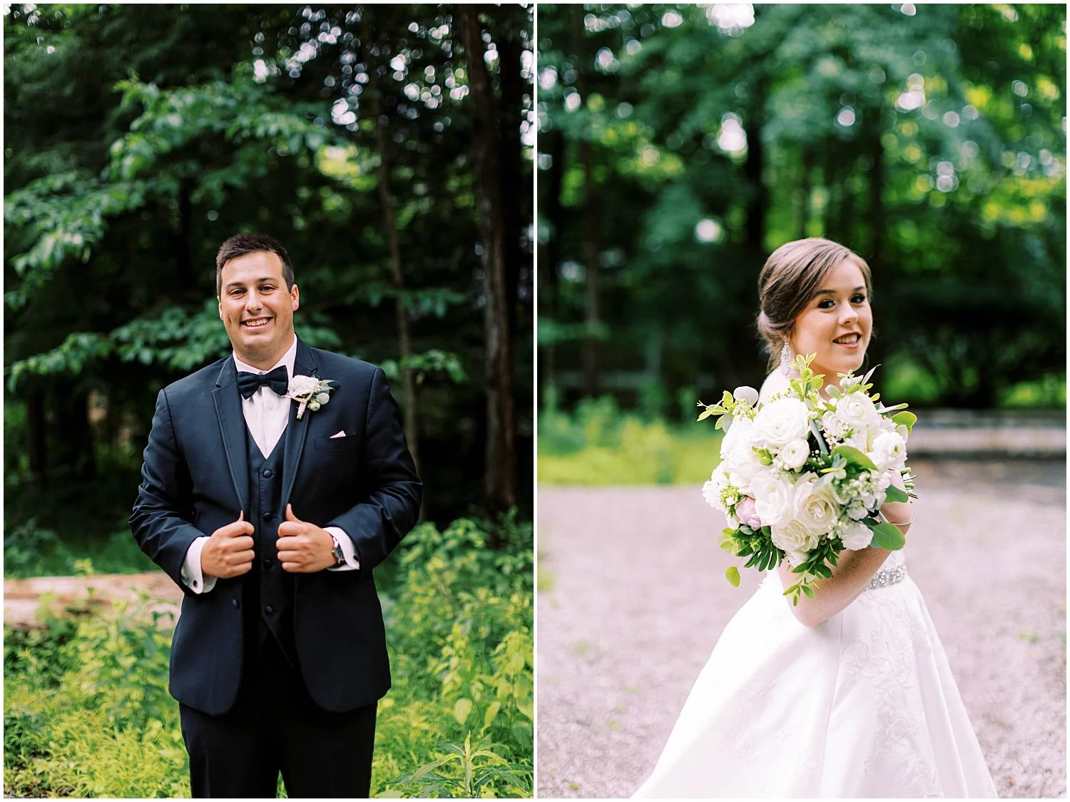 From the Bride: I could talk for days about all of the people and things that came together to make our wedding the most perfect day ever! Everything went so smoothly and when we walked into our venue a few hours before the wedding, we were speechless at how our vision had come together. Krippendorf Lodge is such a unique venue and the woods of Cincinnati Nature Center was the perfect backdrop for the start of our forever! The fresh flowers and smells from the rain-soaked forest just added to the vision we had for our wedding! Working with Kristen at The Yellow Canary to design our flowers was one of my favorite parts of wedding planning and being able to see (and smell) it all come together was so special! Getting married in the forest of the Cincinnati Nature Center is beautiful as is, and I wanted our flowers to enhance the beauty of the forest instead of distract from it. The smell of our flowers and the woods help transport us to an elegant woodland retreat!