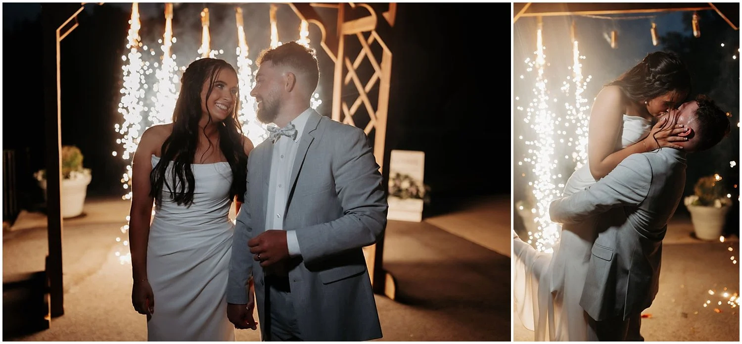 From the Bride: We wanted to have a wedding with a “French Country Theme”, so we went for classy but simple. There were bourbon barrels lining the aisle outside, but rows of baby’s breath and white roses on the tables inside. The venue allowed for the perfect mix of rustic and class to make our wedding perfect!