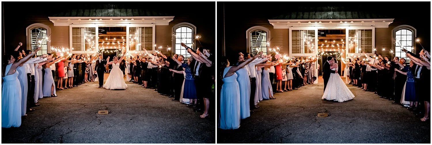 During cocktail hour we live-streamed the Kentucky Derby for our guests so they could cheer on their favorite horse. We decorated our bistro tables at cocktail hour with red roses in bourbon bottles. Our reception centerpieces incorporated roses and hydrangeas, white, with silver accents and candles on some tables. We used Kentucky Derby winners for the table numbers to have a small piece of the Derby in our reception space. And finally, we featured some uniquely Kentucky food and drinks. We decided to serve mini hot browns at cocktail hour so that our guests could enjoy a native Kentucky dish. Our cocktails were a Kentucky Oaks Lily and a Keeneland Breeze. For our beer, we served Country Boy and we had a wine selection as well. We took the same approach when choosing our first dance songs with our parents, our recessional music, and grand entrance songs. We danced our first dance to a mashup of “In the Mood” by Glenn Miller and “It’s Been a Long, Long Time” by Harry James. In high school, Michael and I would go to our school’s Jazz Band Dance, and every year the band featured “In the Mood” as the song for the swing dance competition. Every year that we competed, we won the swing dance competition. We chose Harry James “It’s Been a Long, Long time” because we’re big marvel fans and we felt that it also described our relationship.