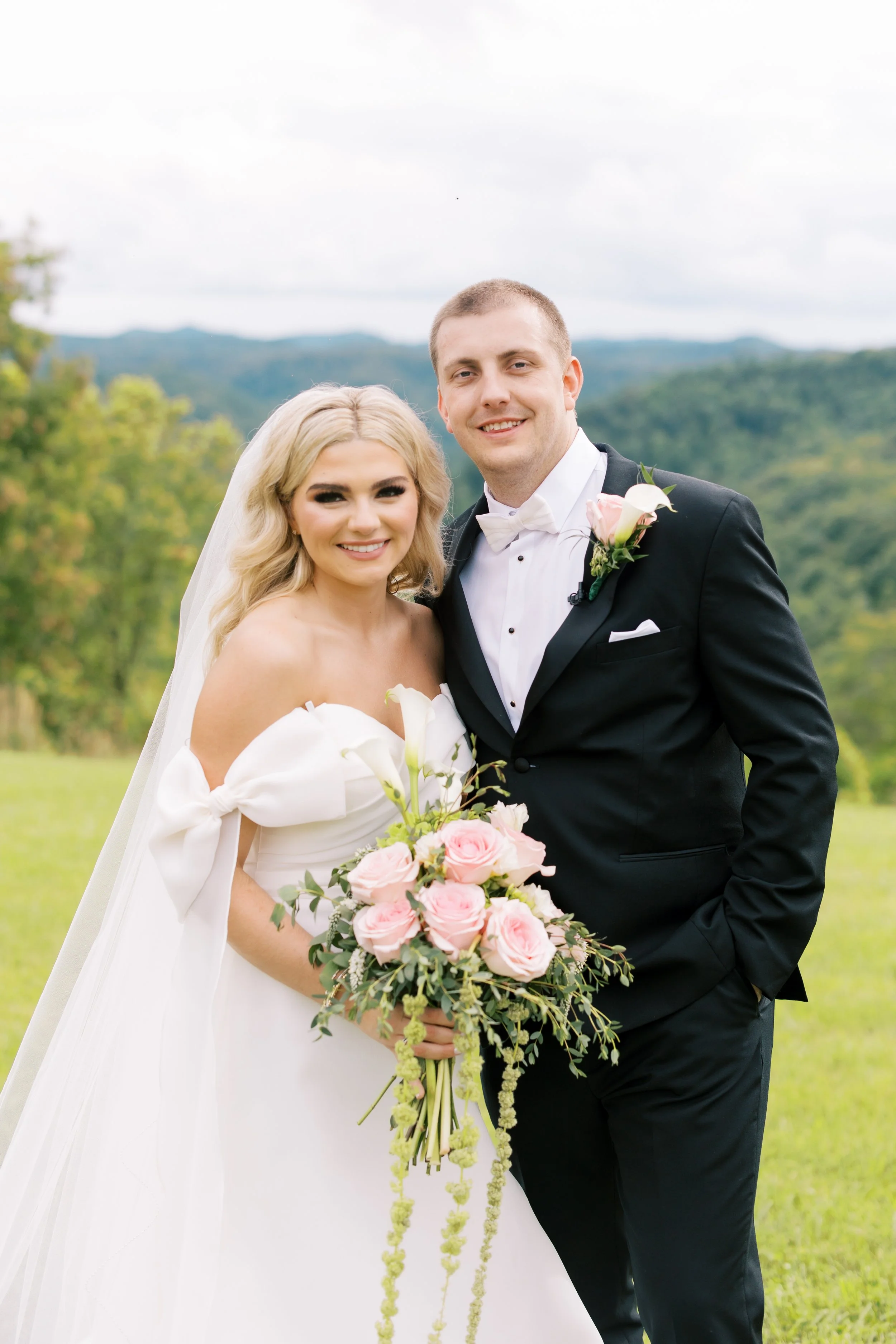 Photography Taylor Yaste Photography Videography InFocus Media Venue D K Farms Florals Jean Everage of Hindman Floral Caterer Michelle Combs/Shenanigans Cake Ashley Teague Rentals R&R Tent Rentals, Nadia's Elegant Events Music DjMj Entertainment Transportation City Of Hazard Trolley Paper Products Custom Wedding Crest Designed by Lillies And Marbles, Stationery Designed and Printed by Bride Hair Claire Gamble and Tyra Tackett of Studio 5 Makeup Anna Miller of Anna Marie Makeup Artistry Bride’s Attire Anne Barge from Adorn Bridal, (Shoes) Manolo Blahnik Groom’s Attire Men’s Wearhouse (Tie) Custom from Scraps of Bride’s Dress (Boots) Tecovas Jewelry (Engagement Ring) Custom by Kay Jewelers (Earrings) Mother of the Bride's Diamond Studs (Tennis Bracelet) Kay Jewelers (Other Bracelets) David Yurman, Maple & J Credits (Wedding Coordinator) Jamie Haynes (Groom Alterations) Etsy (Reception Shoes) Custom Golden Goose by Mary Miletello (Beer Burro Donkeys) Tiney Hiney Burros (Bridesmaid Pajama Embroidery) Courtney Brewer, 1963 Corvette Stingray, Allocated Bourbon from Groom’s Collection.